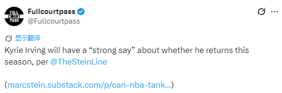北京时间2月17日,据名记Marc Stein报道,独行侠球星欧文对于本赛季是否复出拥有重要话语权。
