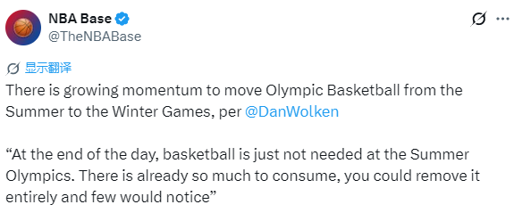 国际奥委会应该推动这件事,因为这会大幅提升冬奥会对全球观众的吸引力,同时几乎不会削弱夏奥会的精彩程度——篮球在夏奥会上本就常常像个“附加项”。