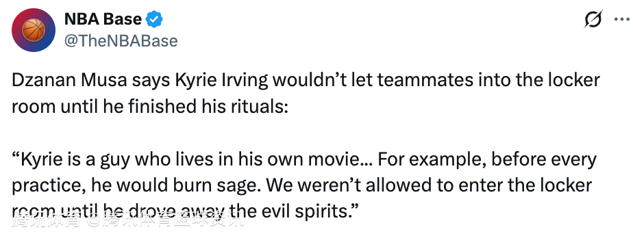 北京时间2月18日,近日,前NBA球员穆萨在播客节目中谈到了昔日在篮网和欧文当队友的一件趣事。
