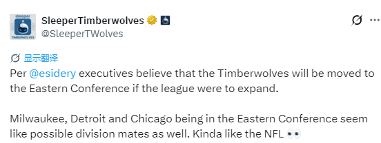据NBA记者埃文-西德里报道,大多数联盟高管认为,森林狼是迁至东部的最合理选择。明尼苏达的地理位置,加上爱德华兹这样的球星能帮助平衡东部实力,让这一调整十分合理。