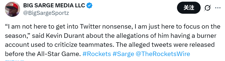 此前,美媒晒出了疑似杜兰特小号的一些言论,当然,目前没有实质证据可以证明这些账号的内容就是杜兰特发的—