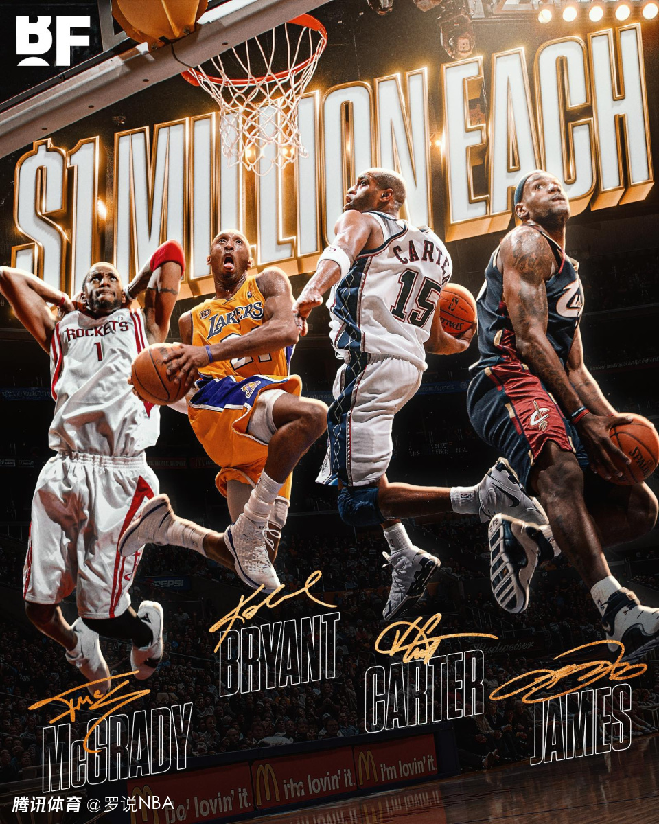 NBA官方曾开出100万美元报酬,希望促成詹姆斯、卡特、科比-布莱恩特和特雷西-麦克格雷迪同台竞技,但最终未能实现。卡特表示,四人中只有他一人同意参加,没能看到这四人同场竞技,实在是一大遗憾。