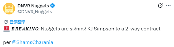 北京时间2月19日,据ESPN名记Shams报道,消息人士透露,KJ-辛普森将与掘金签下一份双向合同。