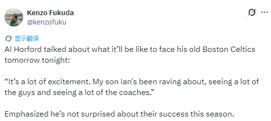 北京时间2月19日,NBA常规赛继续进行,勇士明日将对阵凯尔特人。赛前,勇士老将霍福德接受媒体采访并谈到对阵老东家的感受。