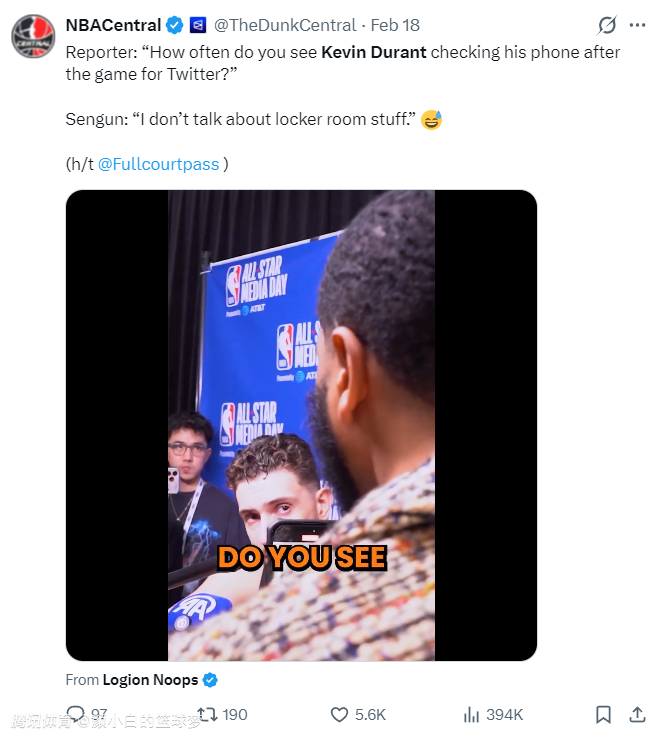 乌度卡也谈到了‘疑似杜兰特小号’风评,他表示:实际上我从不关心那种环境,也不在社交媒体上发表任何言论,所以你们根本无需对此多家关注。