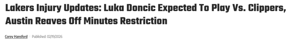 不过随着东契奇和里夫斯康复归队,湖人准备向全联盟证明他们可以和任何球队抗衡,而这一切将从明日对快船比赛开始。