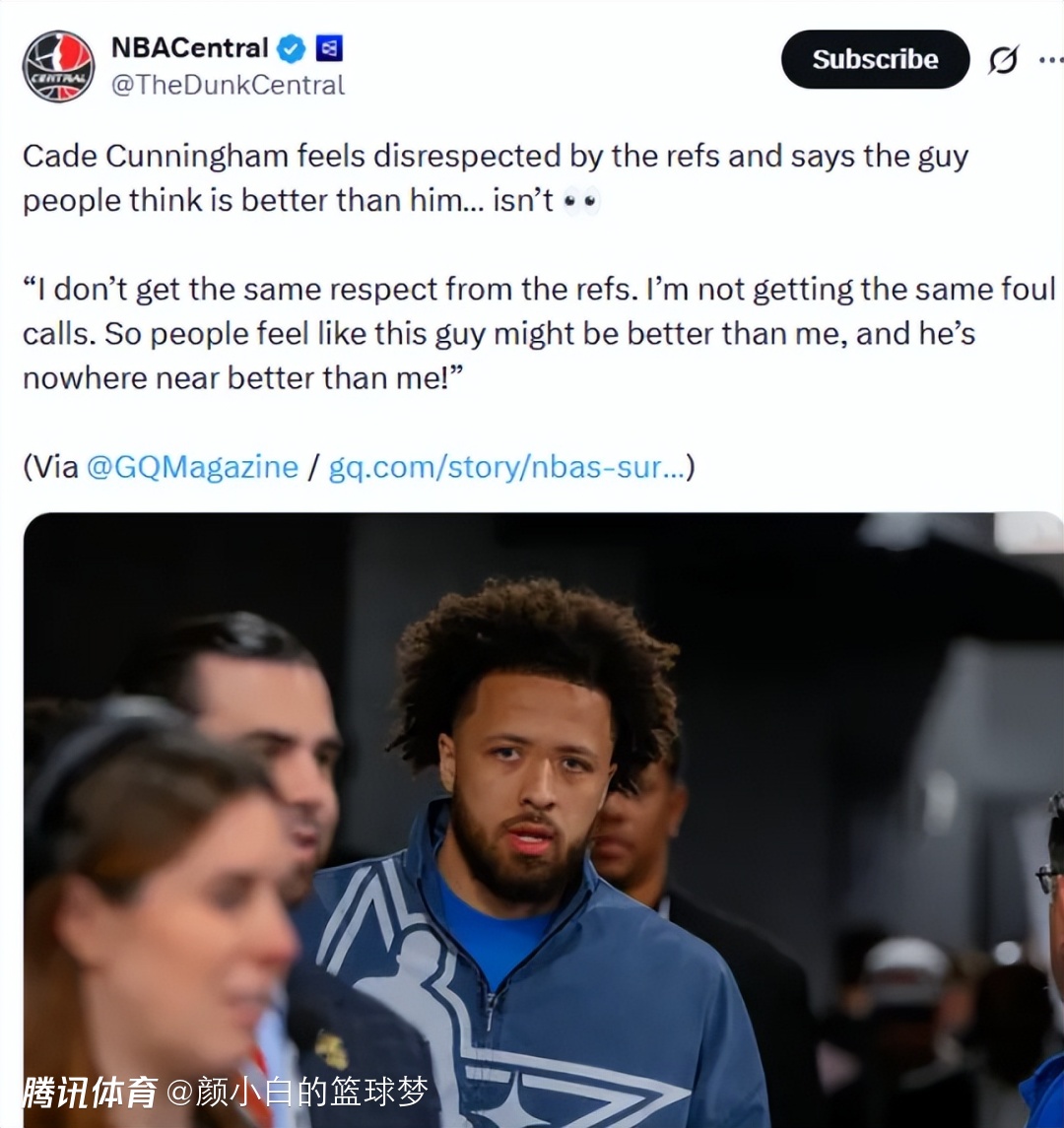 这场比赛之前坎宁安抱怨了联盟的吹罚不平等,他表示:我没有得到同样的尊重,也没有得到同样的判罚待遇。所以人们可能会觉得某个人比我强,但他根本不如我!我想入选美国男篮奥运阵容,