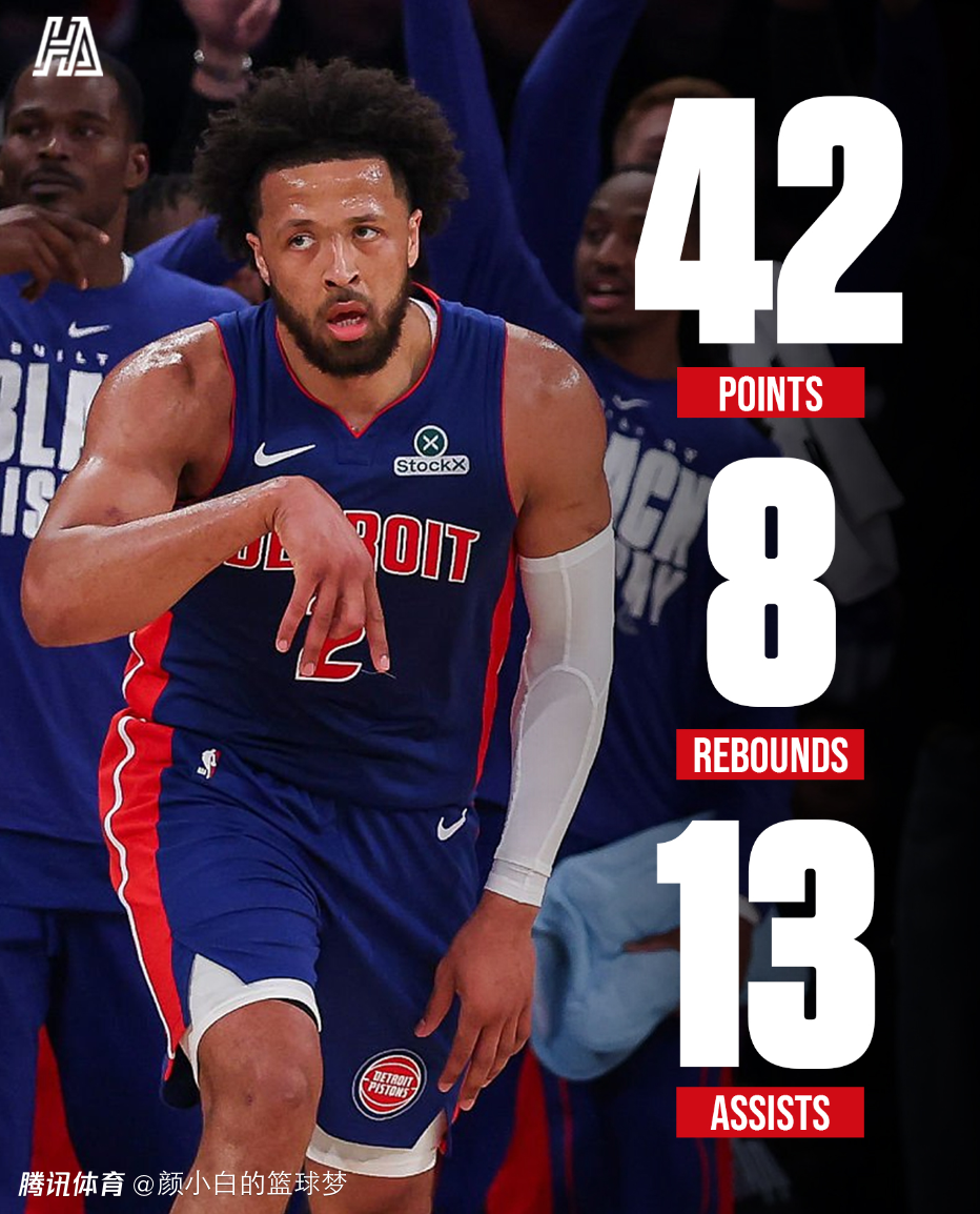北京时间2月20日,NBA常规赛,底特律活塞126-111大胜纽约尼克斯拿到四连胜。这场比赛活塞一直压制尼克斯,上半场打完已经领先到10分,第三节打完拉开到11分,末节活塞继续扩大领先优势。坎宁安此役拿到42+13+8的准三双数据完压布伦森。