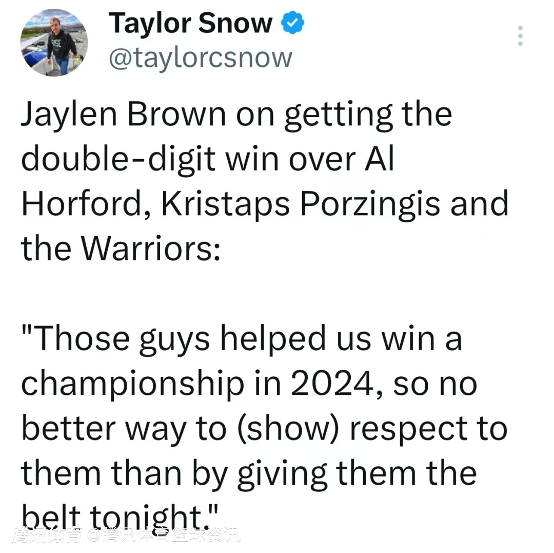 杰伦-布朗谈到了对阵旧队友霍福德与波尔津吉斯的感受:“这两位曾和我们一起在2024年拿下NBA总冠军,所以今天好好给他们上一课,就是致敬他们最好的方式。”