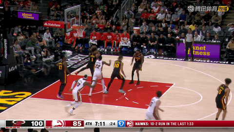 节末希罗、阿德巴约轮番冲击篮下,首节结束,热火29-16领先老鹰。