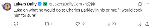 在谈到如果自己和巅峰的巴克利对位,自己能否打爆巴克利时,东契奇调侃道:“我肯定能打爆他。我们俩之间肯定会互喷很多垃圾话,我觉得会非常有趣。”