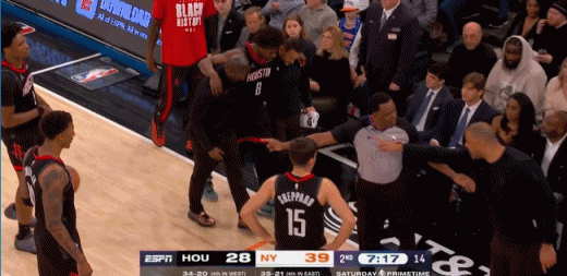 北京时间2月22日,NBA常规赛,火箭客场对阵尼克斯,比赛第二节,泰特被唐斯一屁股坐到膝盖,伤退离场。