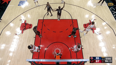 第三节还剩11分26秒时活塞仅以55比53领先公牛,随后他们在从第三节还剩11分26秒到还剩2分44秒的8分42秒内打出37比17的攻势,把比分拉开到92比67,将优势从2分扩大到25分,基本杀死比赛悬念。