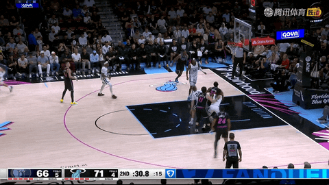 第一节还剩8分45秒到7分12秒期间,热火连续5次进攻得分,从8-10拉开到18-13,将领先优势从2分扩大到5分。随后比赛节奏转向灰熊这边:从第一节还剩5分54秒到2分38秒,GG-杰克逊连续命中5次投篮,其中包括两次突破挑篮、一次跑投、一记三分和一次扣篮,硬生生把比分从17-18追到28-29,将分差从3分缩小到1分。