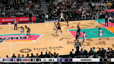 但第二节后段风云突变,从还剩3分49秒开始,马刺连续5次防守成功,逼出国王多次投篮打铁和失误,并在还剩3分24秒到1分49秒间连续制造威少、德罗赞等人的失误,将领先优势从1分扩大到6分。