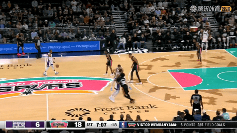 第一节中段,马刺在还剩7分58秒到6分56秒期间连续完成三次扣篮,文班亚马空接暴扣、突破扣篮,尚帕尼跑动扣篮,比分从6:18被拉大到6:20后继续稳居上风。
