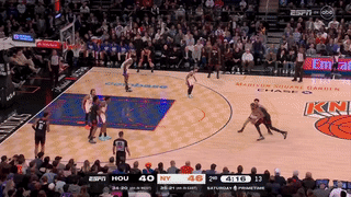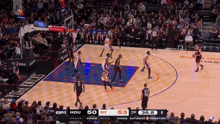 次节,阿奴诺比里突外投连得5分,唐斯勾手命中,尼克斯7-0领先到13分,谢泼德三分止血,申京勾手命中,小史密斯中距离得分,阿尔瓦拉多轻松命中空位三分,随后布里奇斯连得5分对飙伊森和史密斯,打着打着尼克斯进攻断电,杜兰特和申京带队一波14-4瞬间扳平比分,唐斯三分止住颓势,杜兰特突破暴扣以及造杀伤罚球得分,半场打完火箭54-53反超尼克斯1分。