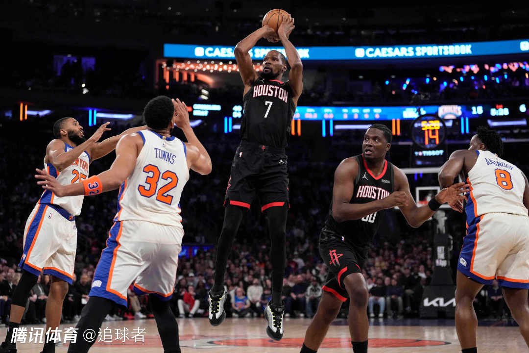 末节,芬尼-史密斯捡篮板上空篮得分,随后尼克斯疯狂反扑,唐斯、沙梅特、阿尔瓦拉多接连命中三分,唐斯隔扣小贾,布里奇斯补扣,尼克斯一波16-4瞬间追到6分;伊森罚球止血,布伦森关键时刻连续得分,比赛还剩1分19秒尼克斯追平比分,决胜1分钟,申京大帽阿尔瓦拉多,杜兰特撞翻布伦森吃到进攻犯规,布伦森高难度后仰中投,杜兰特中投打铁,小史密斯错失三分,杜兰特只能采用犯规战术,阿奴诺比两罚全中,比赛还剩1.4秒杜兰特三分续命,沙梅特两罚一中,杜兰特错失三分绝杀,最终尼克斯在主场击败火箭。