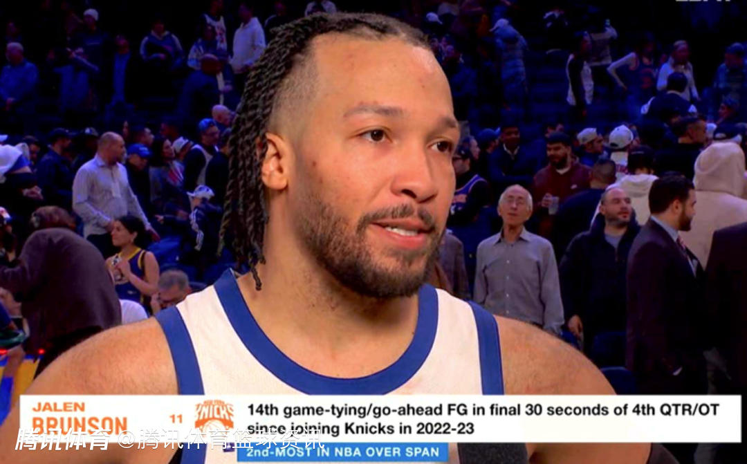 布伦森此役最后时刻命中关键中投,自从他2022-23赛季加入尼克斯队之后,已经14次在比赛最后30秒命中扳平或反超球,同时期排名NBA第二,仅次于德罗赞。