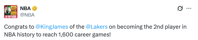 北京时间2月22日,NBA常规赛继续进行,湖人对阵凯尔特人。本场比赛,湖人球星詹姆斯首发出战,就此成为NBA历史上第二位职业生涯出战1600场常规赛的球员,排在他前面的仅剩名宿帕里什(1611场)。