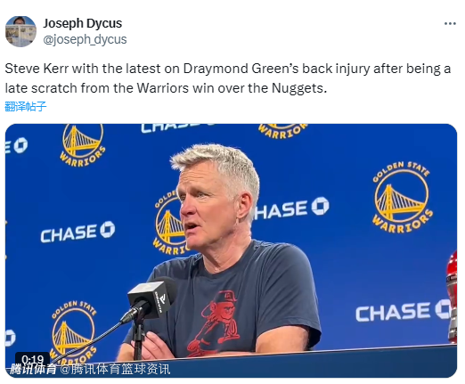 谈及追梦缺战,科尔表示:他原本是要出战的,但赛前热身时,他的下背部出现了紧绷感。目前我还没有更新的消息,希望他没事。”波尔津吉斯因身体不适在赛前被撤出名单,同样暂无更多消息。