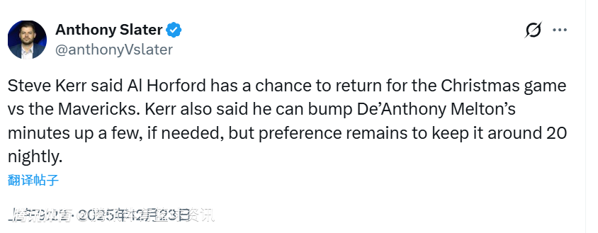 在谈到霍福德的情况时,科尔透露,霍福德有望在对阵独行侠的比赛中复出。科尔同时透露,若有需要,他可以适当增加梅尔顿的出场时间,但球队更倾向于将其场均出场时间维持在20分钟左右。