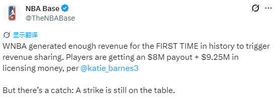 北京时间2月24日,WNBA球员工会负责人向ESPN透露,2025赛季WNBA历史上首次实现营收达标,正式触发与球员的收入分成机制。