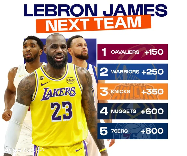 詹姆斯的最新下家赔率也显示,骑士是头号热门下家,排在前五位的依次是骑士。