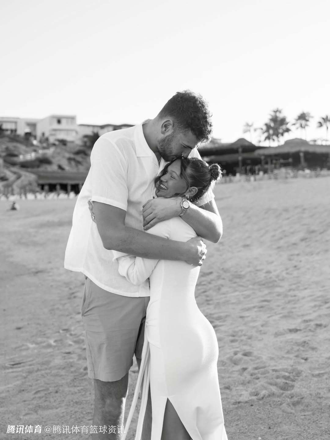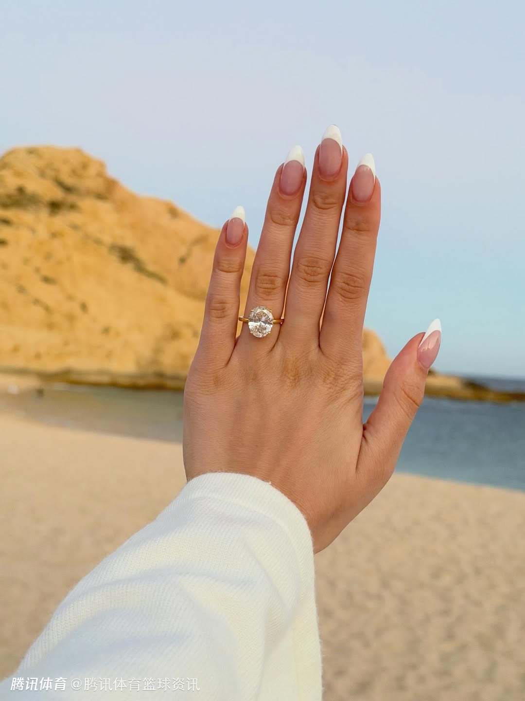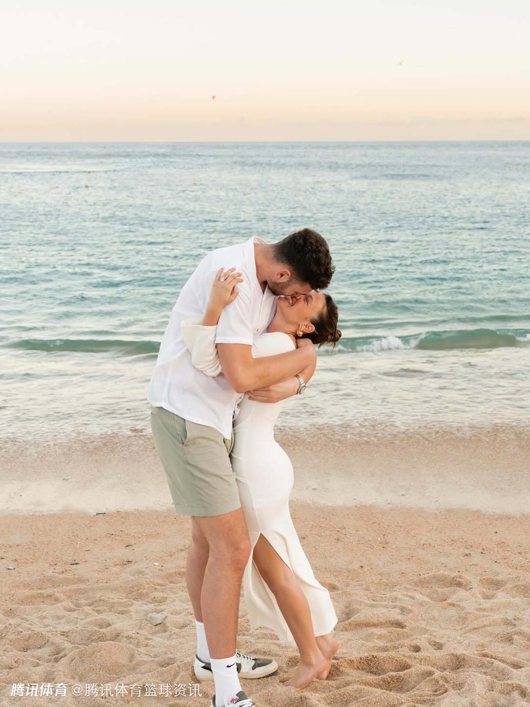 照片中,两人在风景优美的海滩上,克林根单膝跪地向女友求婚。