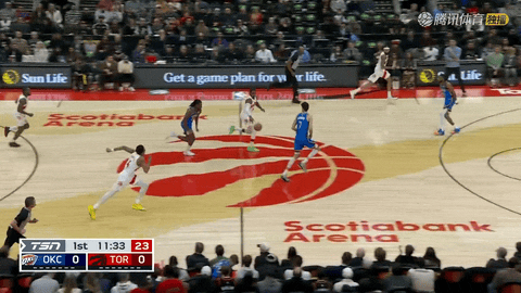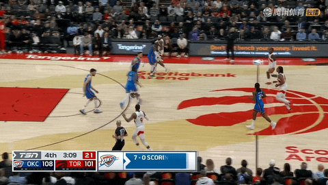 第二节还剩1分56秒至还剩22秒,雷霆连续5次进攻得分,从51:46拉开到60:49,把领先优势从4分扩至11分。半场结束前巴恩斯暴扣回应,猛龙将比分追到51:60,雷霆带着领先进入下半场。