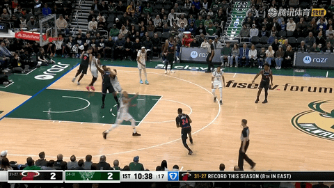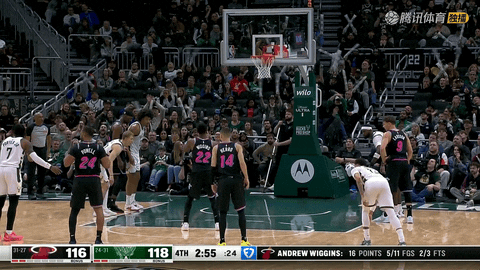 终场哨响,雄鹿128:117战胜热火。