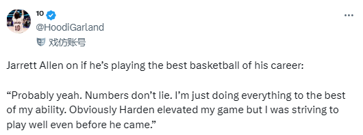 艾伦:呃,大概是吧。没错,数据不会骗人。我不太清楚具体数据,但无论是篮板、得分,还是组织串联,我都在尽自己所能去做一切事情。哈登来了,我们都知道这点。哈登加盟之后,但说实话,即便在他来之前,我就已经渐入佳境、打得很好了;他来了之后,更是把我的比赛表现提升了一个档次。