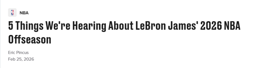 先说明一点:詹姆斯完全掌握自己的命运,下一步由他自己决定。过去几年他曾多次暗示退役可能,这一次或许真的到了时候。