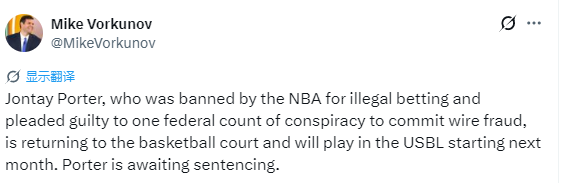 琼泰-波特因参与非法赌球被NBA永久禁赛,他计划下月在美国篮球联赛(USBL)复出。若波特在3月7日代表西雅图超级鹰队出战,这将是他自2024年被NBA禁赛后的首场职业比赛。