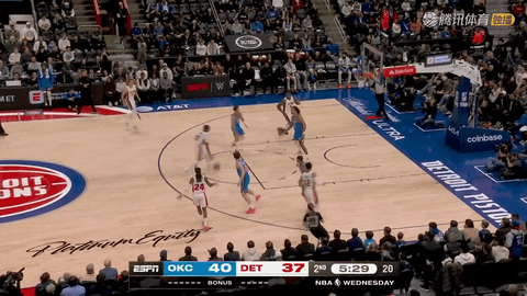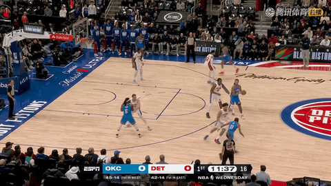 次节回来还剩11分14秒时,里德通过罚球将比分追到34:23,随后雷霆遭遇从还剩12分钟到还剩8分51秒的得分荒,直到华莱士在还剩8分51秒时命中三分才打破僵局。其间格林在还剩9分32秒时命中三分,帮助活塞不断迫近。第二节还剩7分24秒时坎宁安急停跳投命中,5分26秒时杜伦空接扣篮再中,活塞从34:23落后一路追到40:39,并在这一节从还剩11分14秒到还剩30秒的10分44秒内打出27-16的攻势,将比分从34:23反超到50:56。