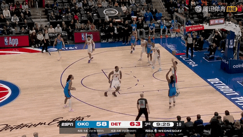 易边再战还剩11分39秒时,麦凯恩后仰跳投命中为雷霆先拿2分,但还剩11分20秒时坎宁安立刻回敬三分。雷霆一度在还剩10分28秒和10分02秒时连续由华莱士攻框得手,把比分追到58:61。第三节还剩9分18秒时,多尔特命中三分后,活塞立即接管比赛,从61:63落后到还剩58秒时打到75:92,在约8分钟内打出29-17的攻击波,期间杜伦在还剩6分20秒时通过罚球得分,坎宁安在还剩58秒时投篮命中,活塞大幅拉开分差。
