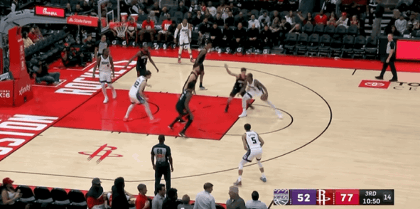 易边再战,阿丘瓦和威少连得5分,伊森反手上篮,国王打出一波13-4的进攻高潮,成功迫近分差到20分以内。杜兰特连得5分为火箭止损,克利福德三分命中,谢泼德空切上篮,德罗赞2罚全中。小史密斯急停跳投,雷诺漂移投篮,克利福德抛投打进,奥科吉连续三分命中。火箭打出一波18-2的进攻高潮,成功拉开分差到30分以上,让国王最后2分40秒一分不得。三节比赛结束,国王76-108落后火箭。