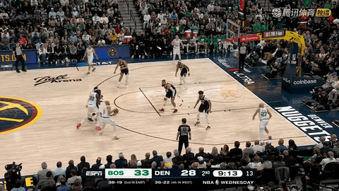 易边再战,第三节还剩11分29秒时布朗通过罚球将分差略微拉开,但形势很快逆转。第三节还剩10分58秒时,约基奇接约翰逊助攻命中三分,将比分追至51-50。此后从第三节还剩10分58秒至还剩33秒,约基奇单节砍下15分,命中多记三分和两分球并通过罚球取分,带领掘金从51-47落后反超至67-75领先。