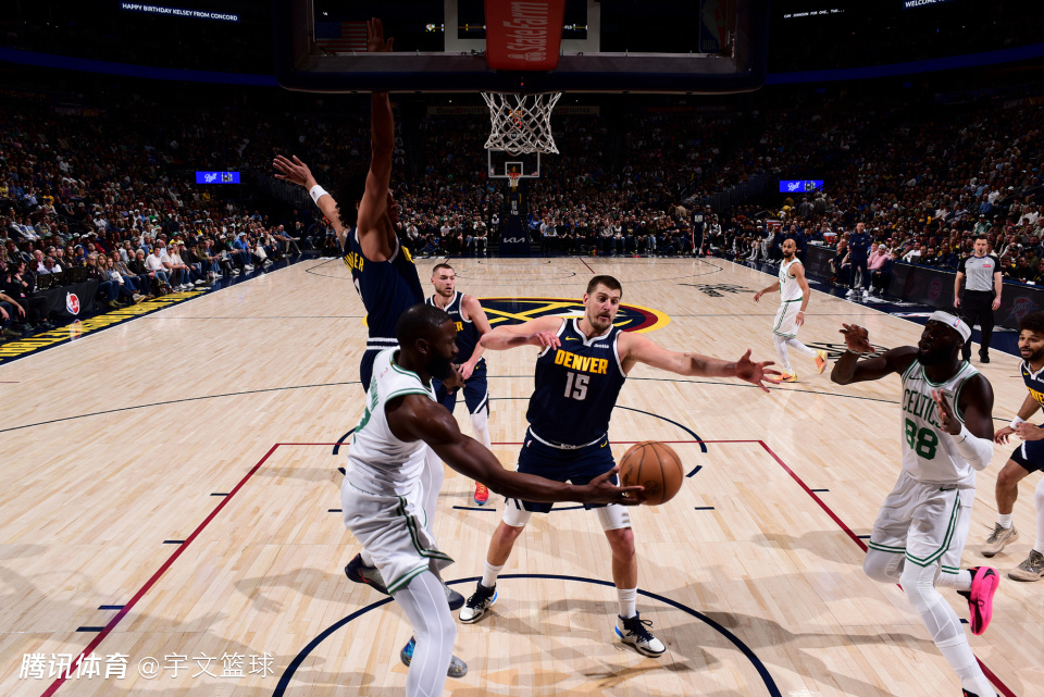 首节比赛,约基奇上来就攻传结合,他助攻穆雷空切暴扣先拔头筹,随后三分出手命中取得个人首次运动战进球。凯尔特人很快进行战术调整,坚决包夹约基奇,不给他轻易串联球队和突破的机会,迫使他只能勉强出球。