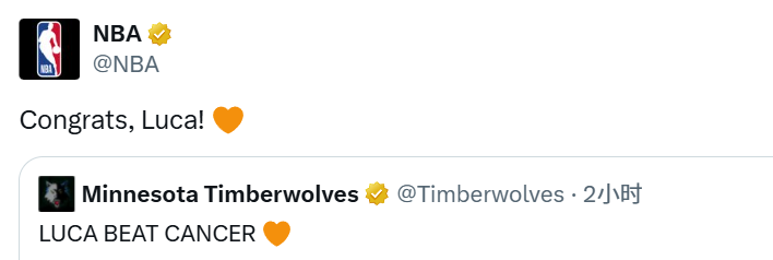 北京时间2月27日,森林狼官方社媒晒图配文写道:“卢卡(Luca)战胜了癌症!”NBA官方社媒转发:“祝贺卢卡!”这里的“卢卡”是一位森林狼小球迷。他和爱德华兹之间的故事,曾经温暖了不少人。