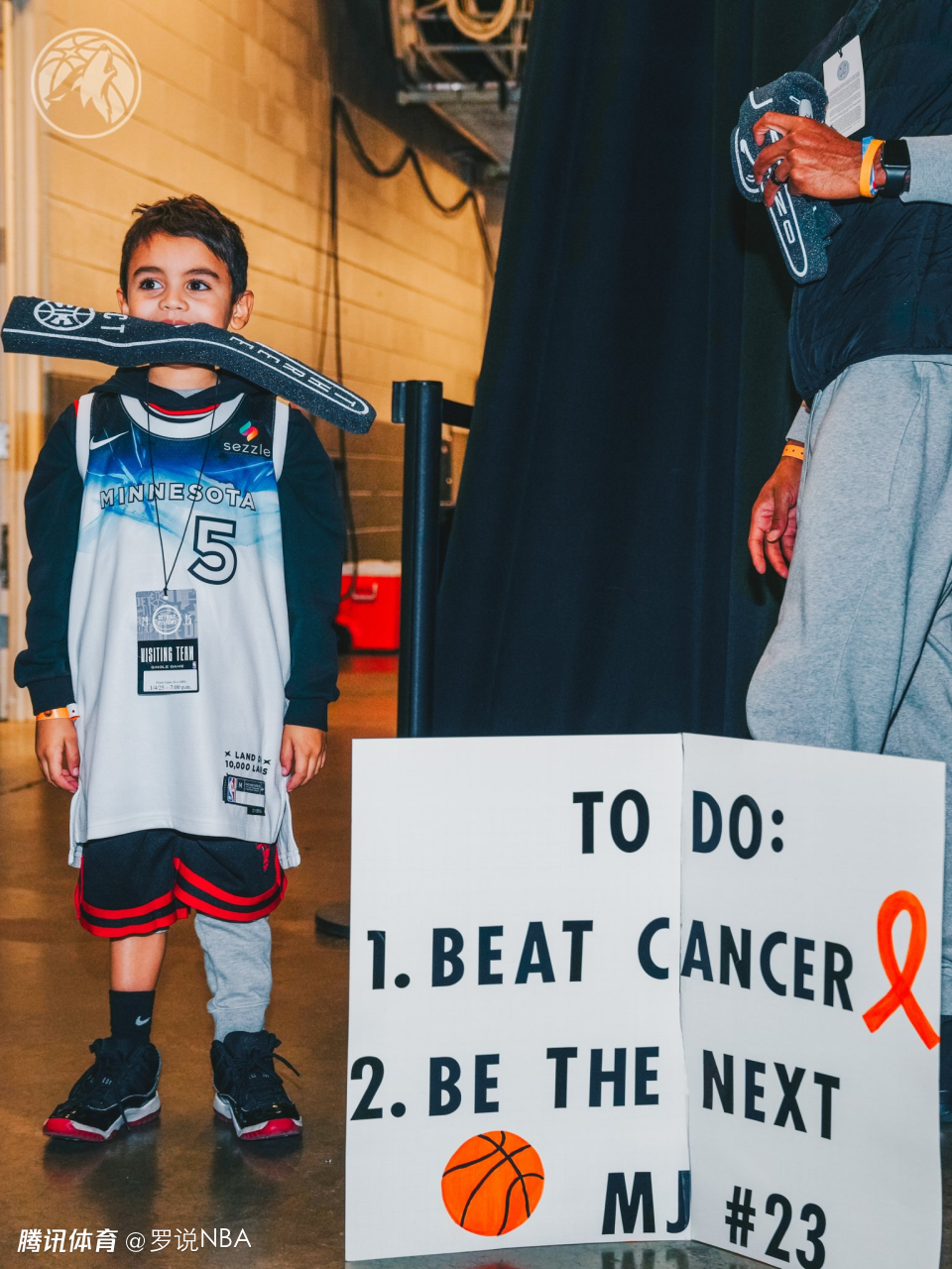这位6岁的孩子当时告诉爱德华兹:数字5对他意义特殊,因为他是在5岁时被确诊癌症的。而爱德华兹从八年级开始就一直身穿5号球衣,是为了纪念他的母亲和祖母——两人都在5号因癌症离世。