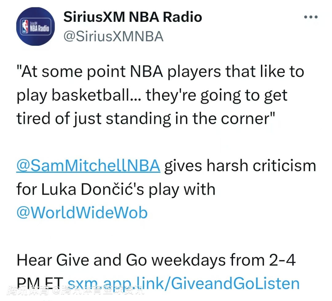北京时间2月27日,前NBA球员、教练萨姆-米切尔近日在SiriusXM NBA电台节目中,公开批评湖人球星东契奇的打球方式,直言其打法存在明显问题,还会对队友产生负面影响。