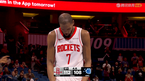 第二节还剩3分22秒时杜兰特转身跳投命中后,火箭直到还剩10秒时才由杜兰特再得分,半场结束火箭43:53落后。