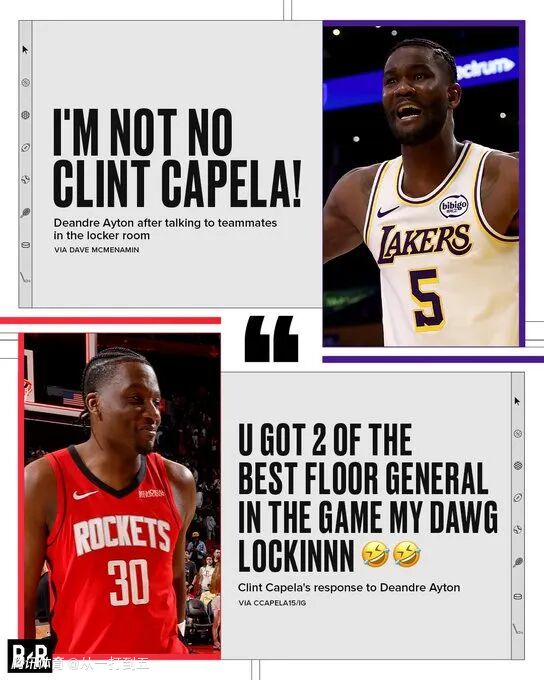 讽刺的是,在赛前ESPN发布的一篇艾顿人物特写稿中,艾顿还抱怨“湖人想把我变成卡佩拉,但我可不是什么卡佩拉”。恰逢今天卡佩拉用凶猛的护筐表现帮火箭19分逆转,若艾顿真能成为卡佩拉,何至于末节被弃用?