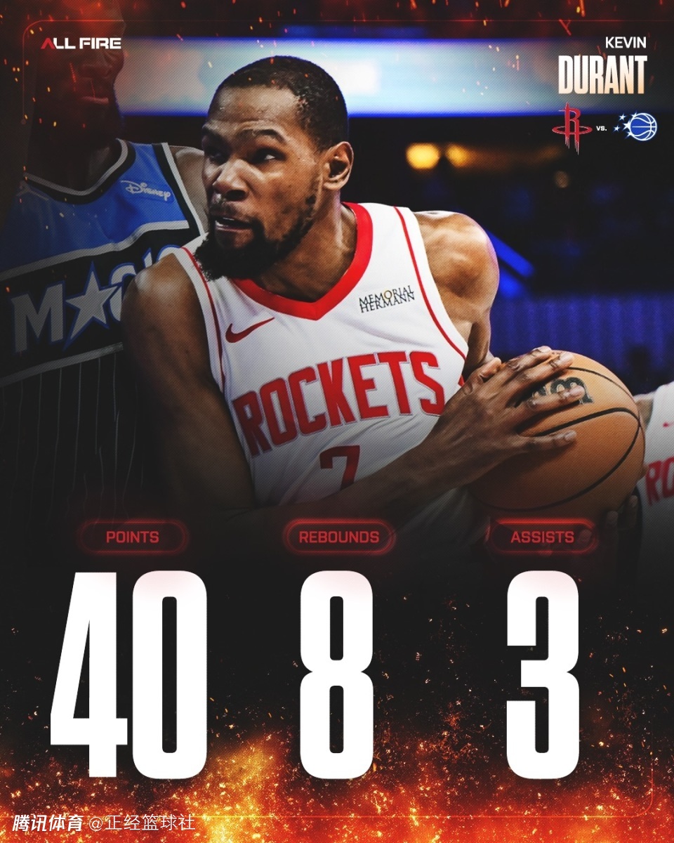在昨天19分逆转魔术队的比赛中,杜兰特打出本赛季个人最佳战之一。他一共首发出战40分钟,28投14中,三分球10投2中,罚球10罚全中,砍下40分8篮板3助攻2抢断,解锁32000分生涯里程碑,追平科比30+场次纪录,升至历史第5位。