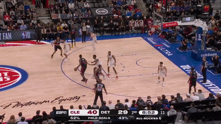 活塞主场的音响设备出问题,现场喇叭声狂响不停,比赛中断了很长一段时间,期间因伤休战的哈登与别人热聊,米切尔坐在现场接受采访。