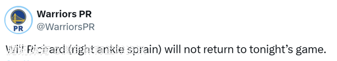 北京时间3月1日,NBA常规赛,勇士主场对阵湖人,勇士官方发布伤病报告,威尔-理查德因为右膝扭伤退出比赛,本场比赛不会回归。