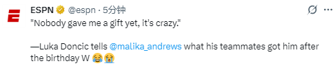 东契奇:还没人送我礼物,太离谱了。
