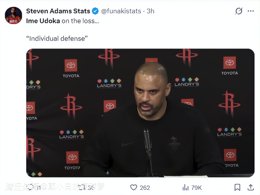 乌度卡赛后谈到球队输球的关键,他认为并不是热火的联防导致球队失利,因为火箭这个赛季见过不少联防也应对的不错,问题是出现空位后我们能投进那些球,但出现空位时投不进联防就显得更有效。对于我们来说得分其实不是问题,我觉得个人防守太差,虽然半场我们追平比分,可我们一节就丢30+,如果我们的个人防守能更正常一点,这场比赛就能赢了。