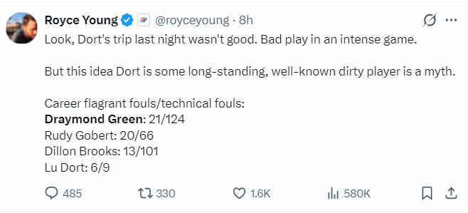 雷霆记者晒出职业生涯违体/技术犯规的次数,追梦21次违体+124次技术犯规都是现役最多的存在。